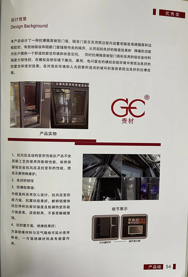 貴材“貴材抗暴隔音新門窗”從全球五百余家參賽企業(yè)中脫穎而出,既是對貴材科技自主創(chuàng)新能力和技術(shù)研發(fā)實力的認(rèn)可和肯定,也進一步推動公司朝著“專精特新”深耕,發(fā)揮省級工業(yè)設(shè)計中心的產(chǎn)品開發(fā)優(yōu)勢,在發(fā)展的道路上不斷尋求創(chuàng)新同時為把貴材科技打造成“貴州”的貴材和“全國”的貴材而不斷努力。